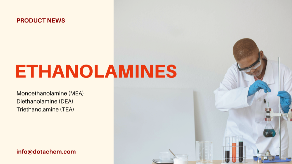Dotachem didedikasikan untuk menyediakan pelanggan global dengan kemarahan tinggiEtanolaminproduk siri dan penyelesaian tersuai. Produk etanolamin kami digunakan secara meluas dalam pelbagai bidang perindustrian seperti pembersihan gas, penjagaan diri, bahan binaan, dan agrokimia. Dengan kestabilan kualiti yang luar biasa, perkhidmatan rantaian bekalan fleksibel, dan sokongan teknikal profesional, kami telah memenangi kepercayaan jangka panjang pelanggan global.