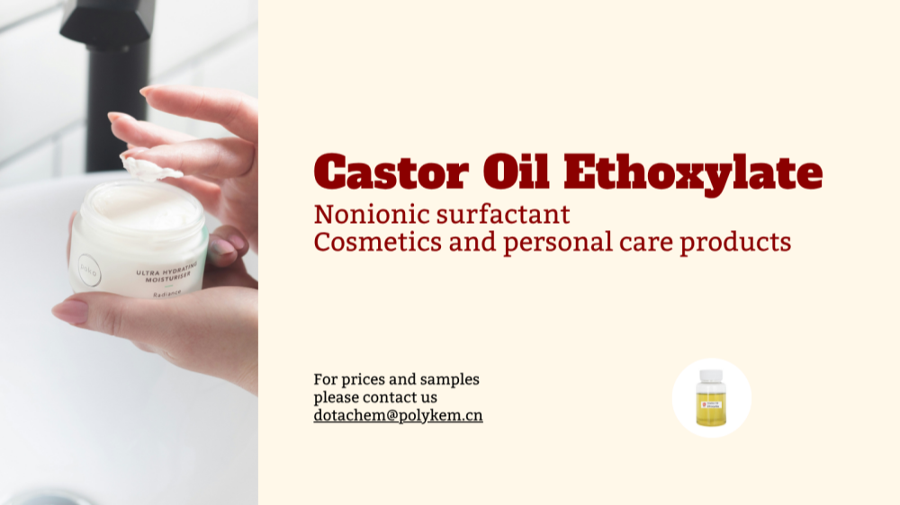 Dalam bidang kosmetik, produk etoksilasi minyak kastor digunakan dalam produk penjagaan kulit seperti krim muka dan pembersih muka. Sebagai pengemulsi, ia memastikan pencampuran seragam bahan berasaskan minyak dan berasaskan air. Dalam produk penjagaan rambut, ia boleh bertindak sebagai perapi untuk meningkatkan gabungan dan kilauan rambut.
